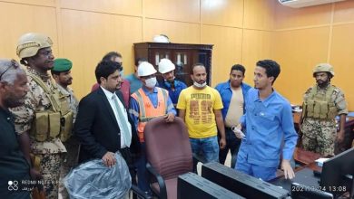 الوزير كلشات المهري يتفقد اعمال الصيانة لمحطة المنصورة بعدن