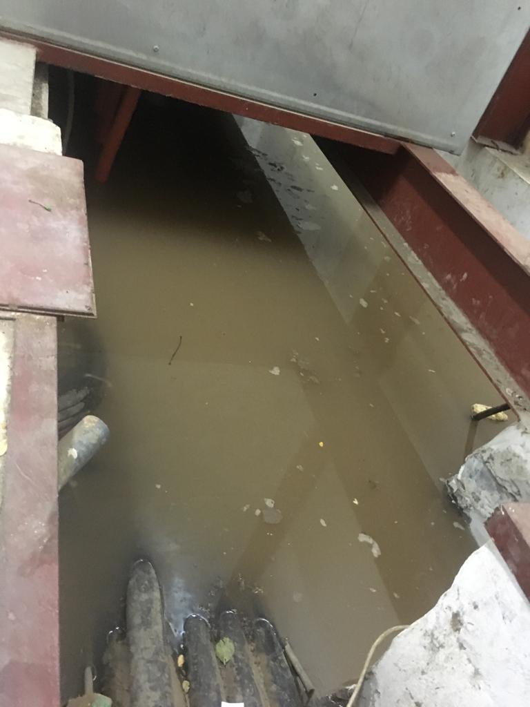 وتظهر الصور تسرب كميات كبيرة من المياه إلى داخل ترنشات الكيبلات في المحطة.