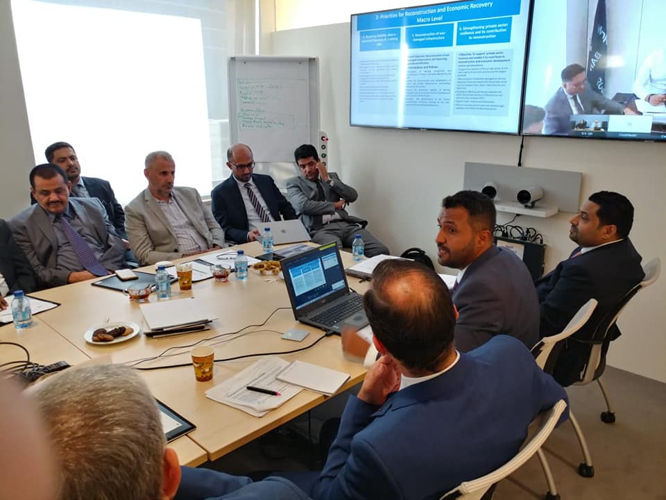 حيث عرض الفريق الحكومي الأولويات العاجلة للتعافي الاقتصادي واعادة الاعمار والبرنامج الاستثماري و التمويلات الدولية للمشاريع التنموية في جميع أنحاء الجمهورية كم تم مناقشة ومراجعة محفظة مشاريع البنك للعام ٢٠١٩م، والتقدم الذي أحرزته المشروعات القائمة في اليمن والتي يمولها البنك مثل توزيع مستحقات الضمان الاجتماعي و النقد مقابل العمل و النقد مقابل الغذاء و البلديات و مكافحة الكوليرا و المياه و الصرف الصحي و إنارة و اصلاح الشوارع و دعم صغار المزارعين و توفير الطاقة الشمسية للمراكز الصحية و المدارس و الآبار و غيرها و التي ينفذها البنك عبر منظمات الأمم المتحدة مثل اليونيسف و البرنامج الإنمائي و الفاو و اليونبس و منظمة الصحة العالمية .. ناقشنا آلية و سبل رقابة و تحسين عمل هذه المنظمات .